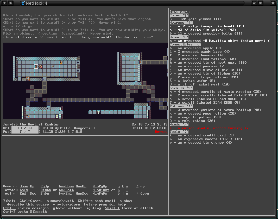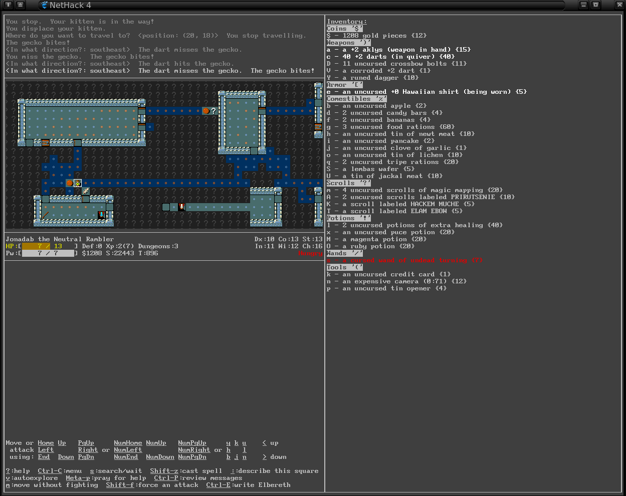 Labels: ASCII, computers, fourk, game, nethack, nethack4, screenshot, variant